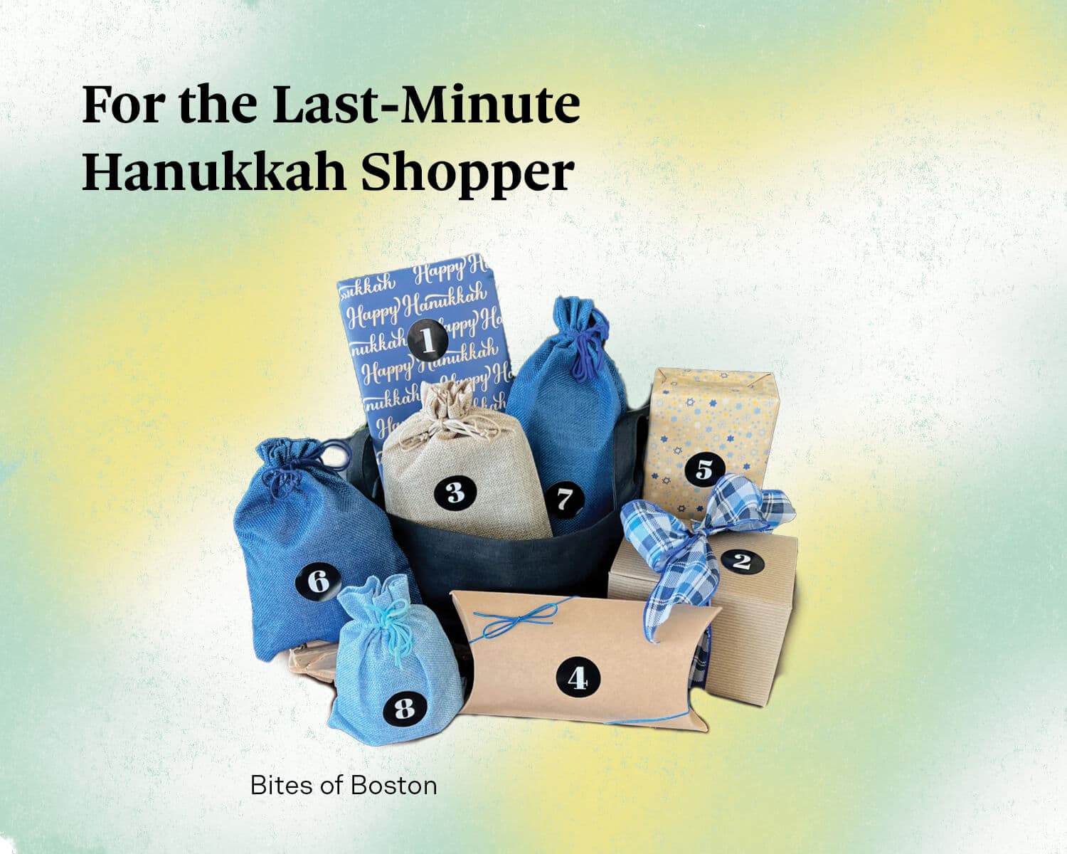 Hanukkah is just around the corner, and if you’re feeling pressed for time, Bites of Boston is bringing loads of local small business favorites right to your doorstep in thoughtfully curated gift boxes. A selection of food, drinks, bath, body, and home products makes each box unique. We don’t know for certain what’s inside these eight beautifully wrapped presents, and that’s what makes them so fun.