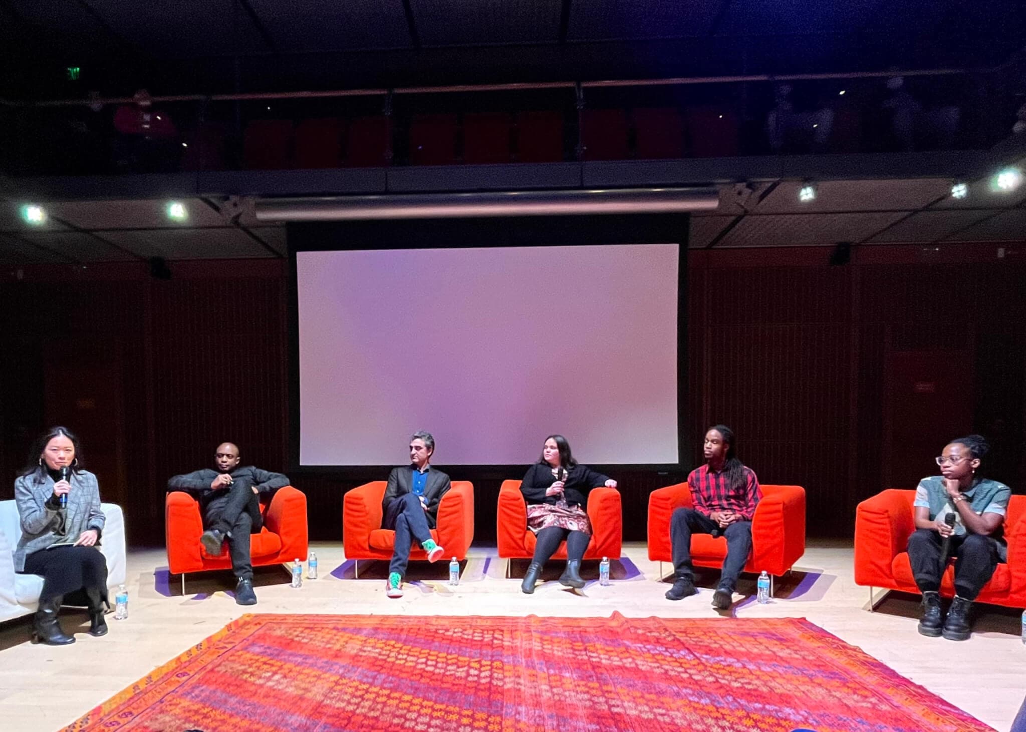 On Monday, January 16, For Freedoms presented a Town Hall at the Isabella Stewart Gardner Museum in conjunction with their Dr. Martin Luther King Jr. Day of Service. Pictured left to right: Yng-Ru Chen, Hank Willis Thomas, Eric Gottesman, Erin Genia, Eric M. Anderson, and Sabrina Dorsainvil. Photo by Boston Art Review.