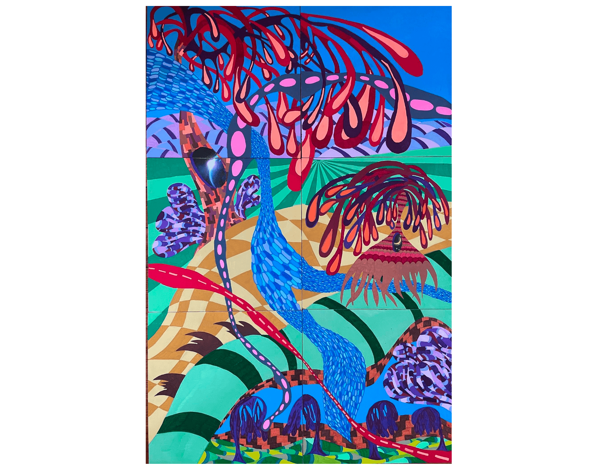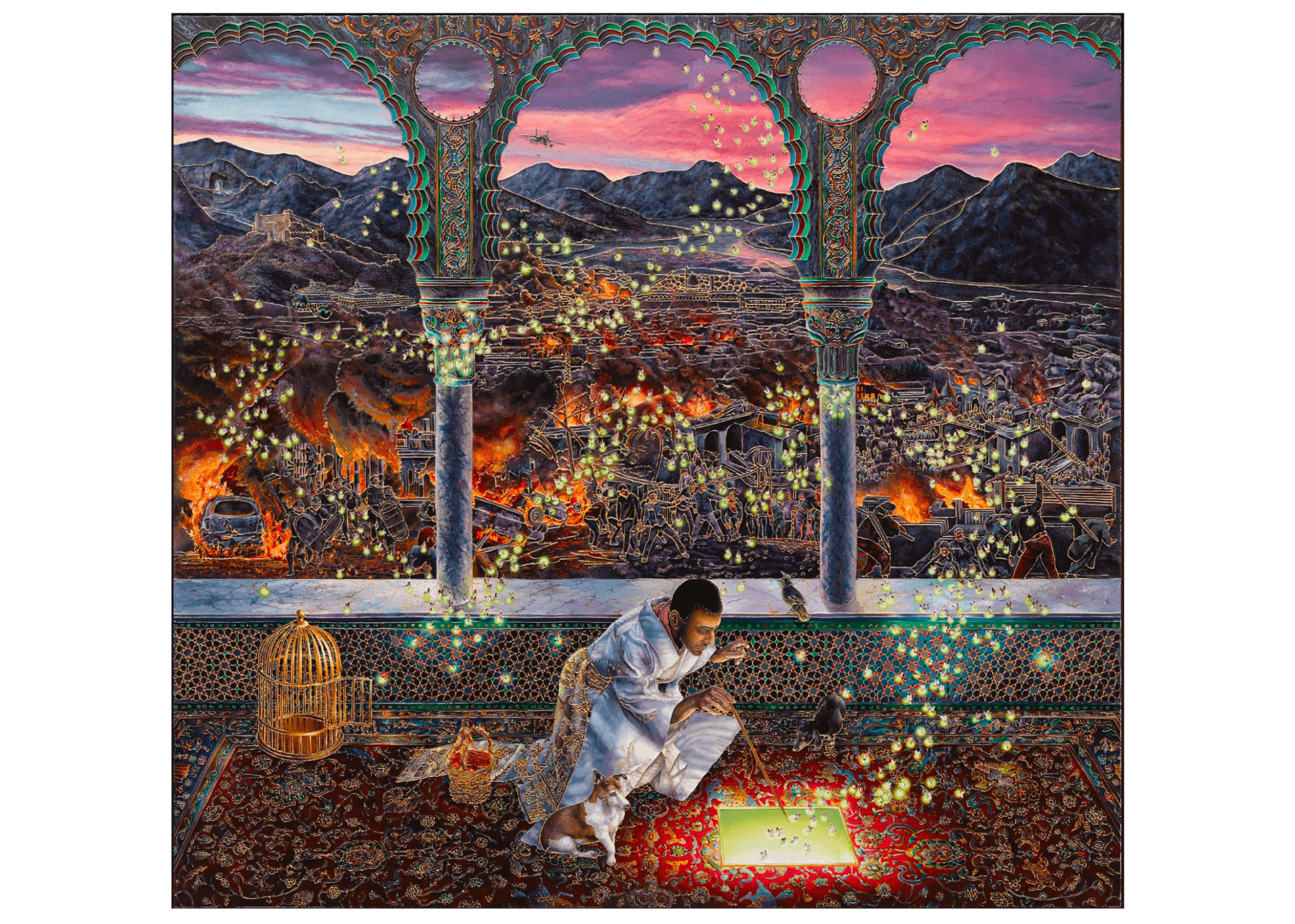 Raqib Shaw, Ode to the Country without a Post Office, 2019–20. © Raqib Shaw. Private Collection. Photo © (White Cube) Theo Christelis.
